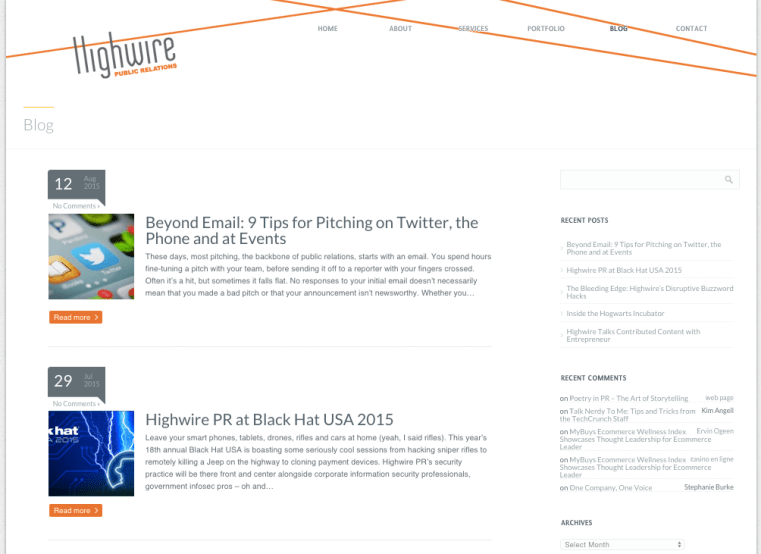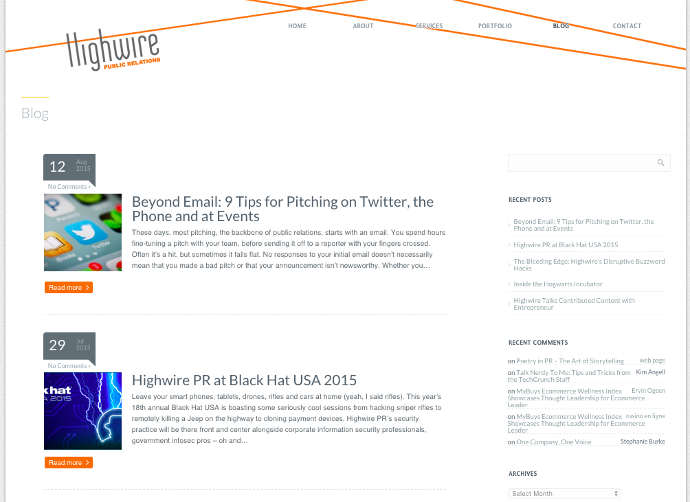 I revived and managed content on the company blog at Highwire PR, a tech public relation firm in San Francisco. I recruited writers to contribute on a variety of PR best practices, coverage of relevant industry events, and team highlights for recruiting purposes.