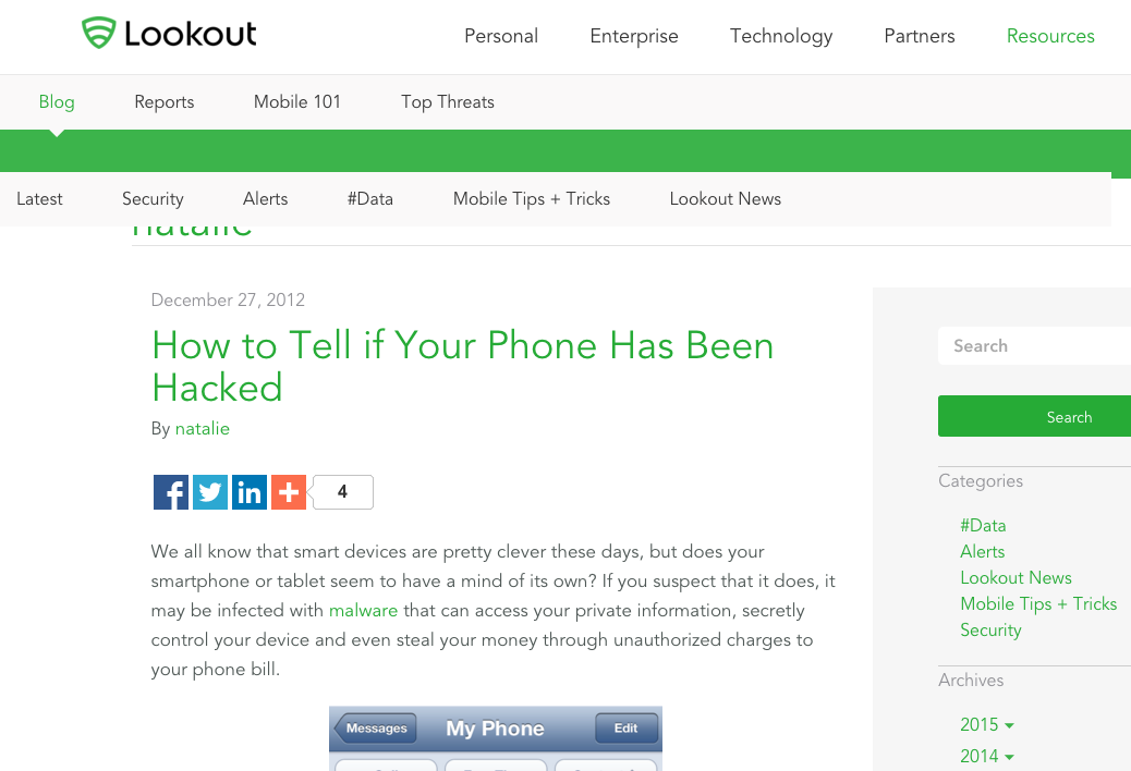 I produced articles on the Lookout tech security blog, as well as maintained and contributed to its editorial calendar, working with staff writers and also writing my own articles.